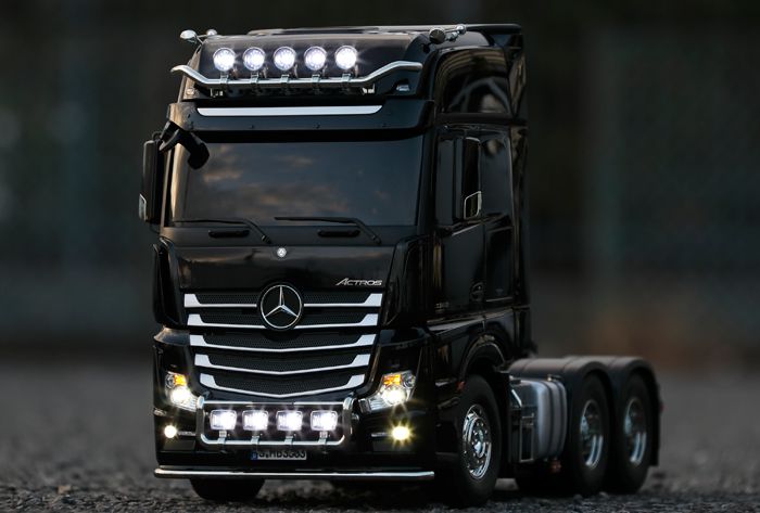 Zdalnie sterowany zestaw do budowy ciężarówki RC firmy Tamiya w skali 1:14. Model ciągnika siodłowego Mercedes-Benz Actros 3363 6x4 GigaSpace.