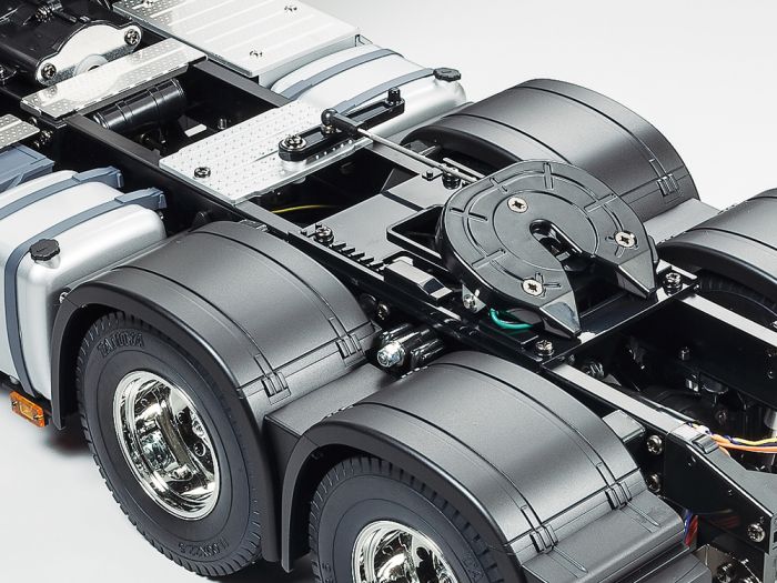 Najwyższej jakości model zdalnie sterowany ciągnika siodłowego Mercedes-Benz Actros 3363 6×4. Perfekcyjne wykonanie, autentyczny wygląd i podwozie z aluminiowymi podłużnicami. Trzybiegowa skrzynia biegów z możliwością zmiany biegów podczas jazdy. Zmiana poszczególnych biegów odbywa się za pomocą osobno dostarczanego czterokanałowego nadajnika. Model jest kompatybilny z wieloma dodatkowymi akcesoriami w postaci modułów dźwiękowych i wibracyjnych, zestawów oświetleniowych, itp.