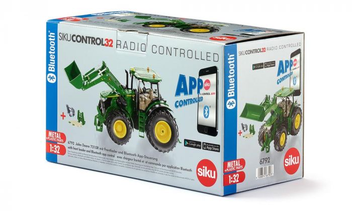 Zdalnie sterowany traktor John Deere 7310R z ładowarką czołową firmy SIKU, wyprodukowany w skali 1:32. Ciągnikiem wraz z ładowarką czołową steruje się za pomocą smartfona lub tabletu wyposażonego w port Bluetooth. Obsługiwane są systemy operacyjne Android i iOS.