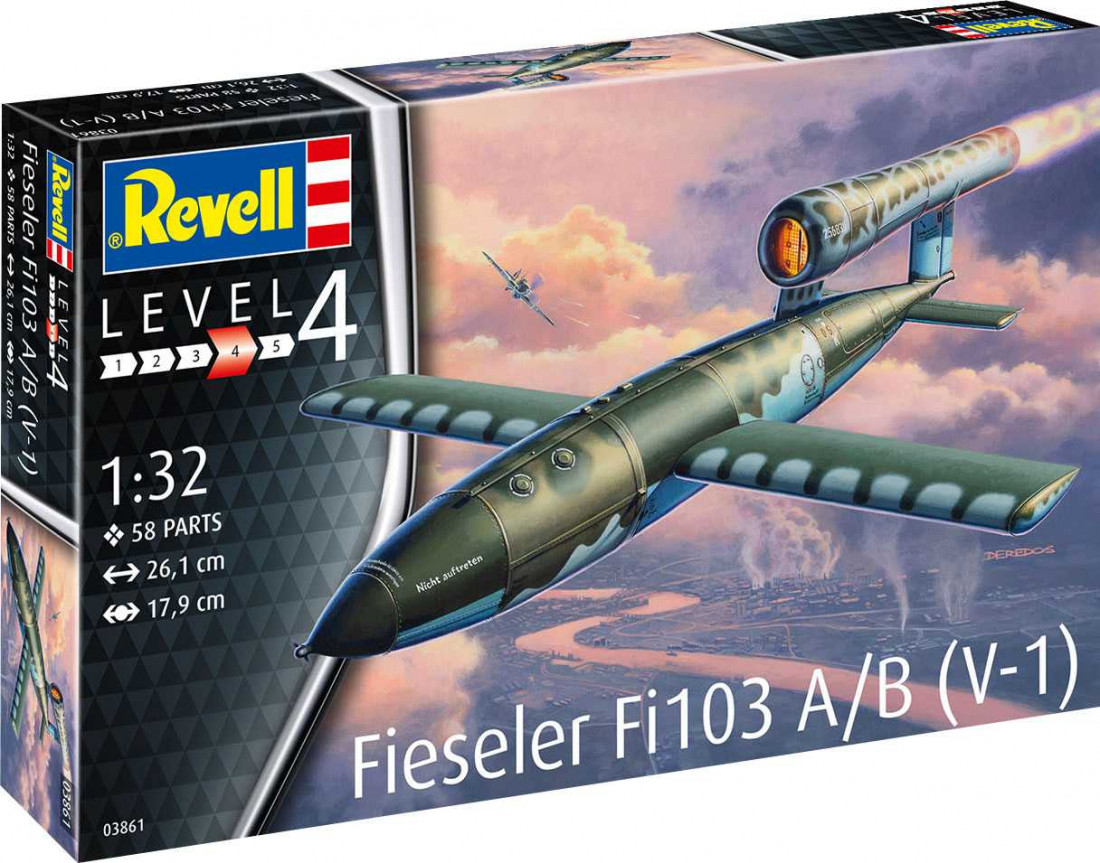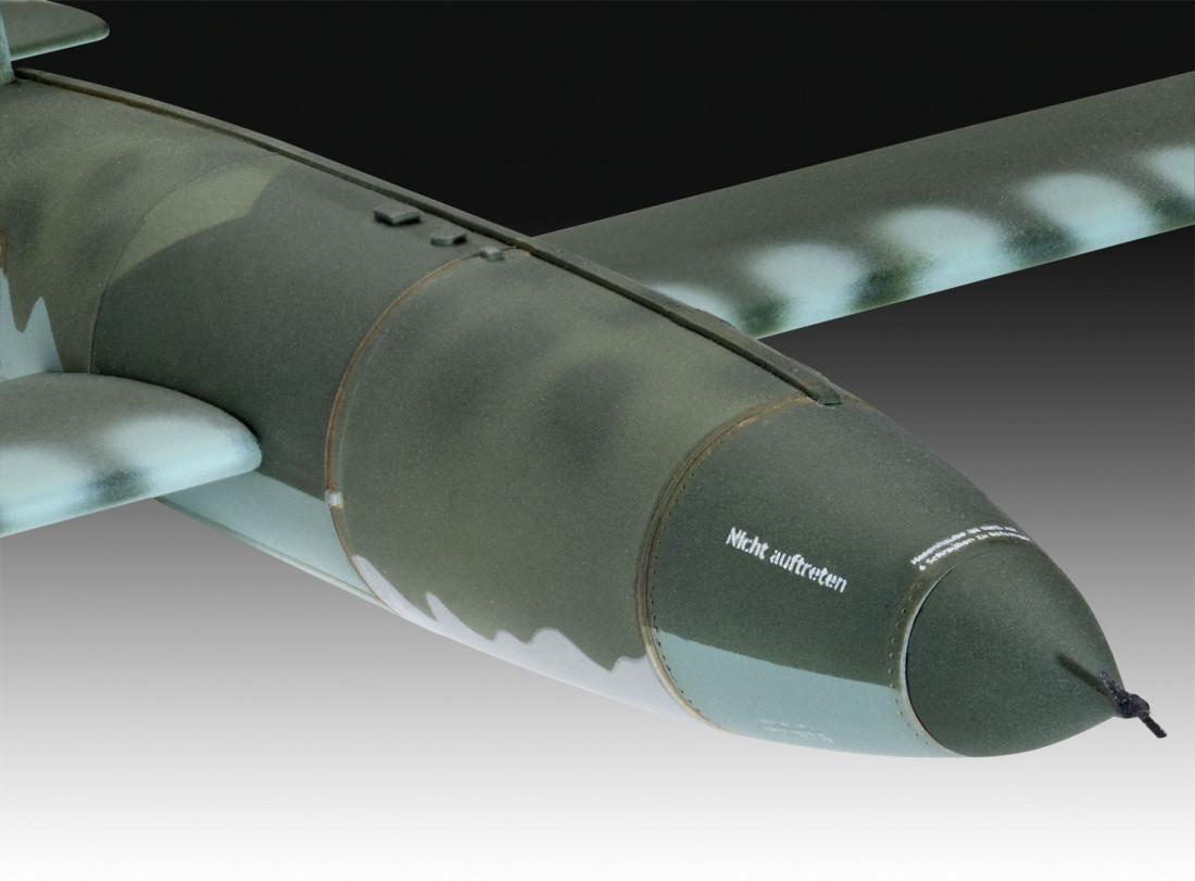 Plastikowy zestaw niemieckiej rakiety Fieseler Fi 103 z okresu II wojny światowej.