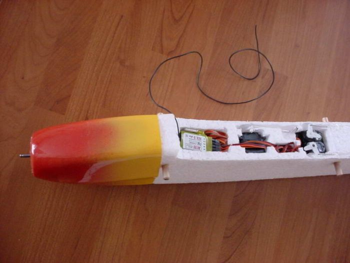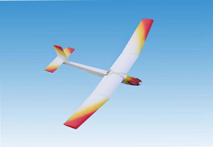 Zestaw RC z trzema kanałami, 2 miniserwomechanizmy 9g, silnik bezszczotkowy 160 W, bezszczotkowy regulator prędkości, składane śmigło 9x5-6", stożek śmigła, akumulator LiPo 2S 1300 mAh, biżuteria potrzebna do skompletowania modelu oraz odpowiednia ładowarka.