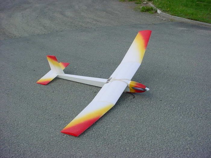 Kontrolowane funkcje RC: ster kierunku, ster wysokości, silnik