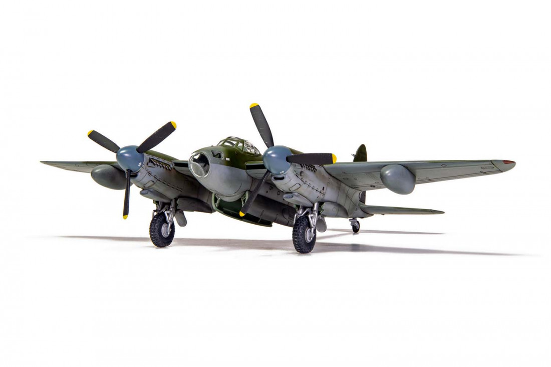 Plastikowy model brytyjskiego wielozadaniowego samolotu myśliwskiego z okresu II wojny światowej de Havilland Mosquito B.XVI.