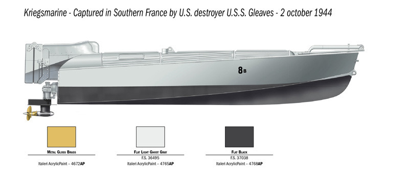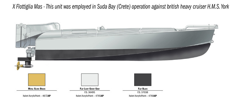 Plastikowy model sterowalnej łodzi wybuchowej włoskiej marynarki wojennej MTM "Barchino".