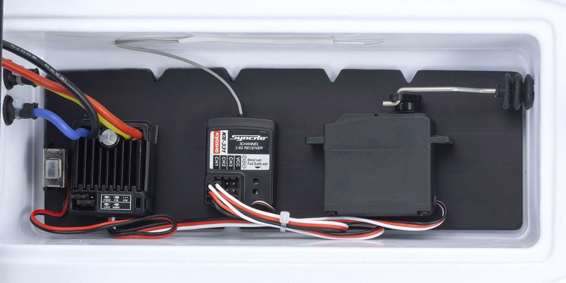 - zmontowany skuter wodny Kyosho Wave Chopper 2.0 z zainstalowaną jednostką napędową i kompletnym wyposażeniem RC,