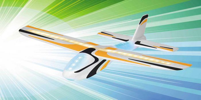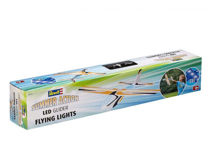 Szybowiec jest wyposażony w diody LED osadzone w kadłubie i skrzydłach, co zapewnia najlepsze właściwości lotne. Kolorowe diody LED pozwalają na tworzenie wspaniałych efektów świetlnych, zwłaszcza podczas lotów nocą. Szybowiec wykonany jest z trwałej pianki EPO i można go złożyć w kilka minut, bez użycia ani kropli kleju!
