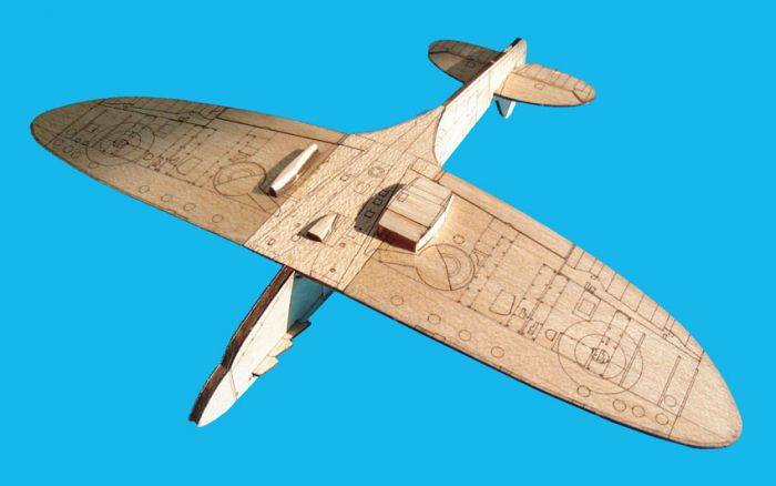 Statyczny model, zabawka lub szybowiec słynnego samolotu myśliwskiego z II wojny światowej, Supermarine Spitfire Mk.VB. W skład zestawu wchodzą wycinane laserowo elementy z balsy i sklejki oraz instrukcja montażu. Do zbudowania modelu, co jest bardzo proste, będziesz potrzebować ostrego noża modelarskiego, papieru ściernego i kleju.