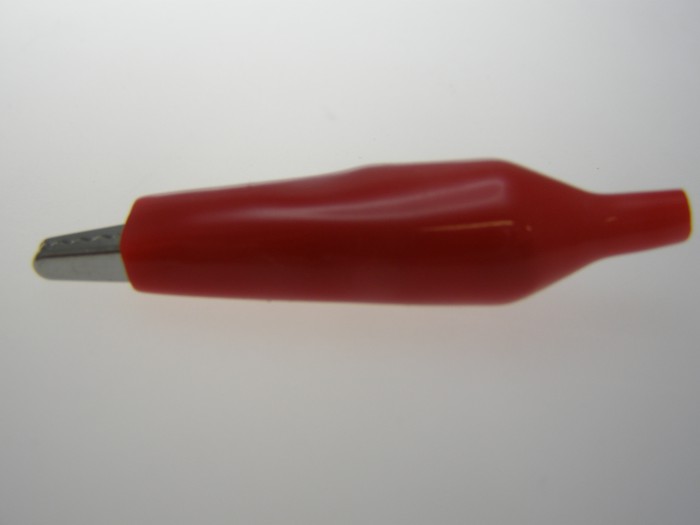 Miniaturowy zacisk krokodylkowy izolowany czerwony - długość 55mm