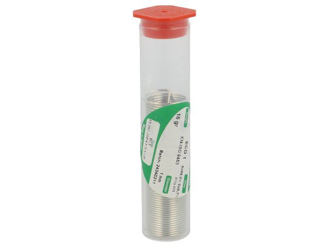 Lut cynowy bezołowiowy o średnicy 1 mm. Skład: 99,3% Sn, 0,7% Cu i topnik. Rodzaj topnika: halogenowy, kalafoniowy, No Clean (bez spłukiwania). Temperatura topnienia: 217–227 °C. Zgodność z normami: EN 29454-1, EN-ISO 9453, J-STD-004 Opakowanie zawiera 16 g bezołowiowej cyny lutowniczej. Zgodność z EN 29454-1, EN-ISO 9453, J-STD-004.