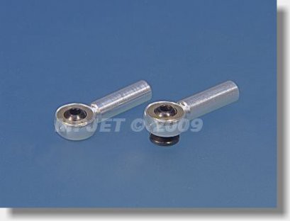 Sworznie kulowe całkowicie metalowe typu V3 (oczko duraluminiowe z gwintem M3, sworzeń stalowy, nitrocementowany, czerniony, o średnicy zewnętrznej 5 mm i otworem na śrubę M2, gniazdo mosiężne, luz roboczy ograniczony automatycznie sprężynowym pierścieniem stalowym). Do precyzyjnego połączenia i całkowicie swobodnego ruchu pręta we wszystkich płaszczyznach. Do montażu zaleca się użycie śruby imbusowej M2×8.