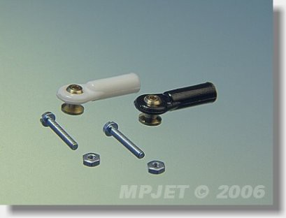 Śruby kulowe typu V1 (plastikowe oczko z gwintem M2, mosiężny trzpień z krótką szyjką, o średnicy zewnętrznej 4 mm i otworem na śrubę M1,6). Do precyzyjnego połączenia i całkowicie swobodnego ruchu pręta we wszystkich płaszczyznach. Zestaw zawiera śruby i nakrętki M1.6. Dostępne w kolorze czarnym i białym.