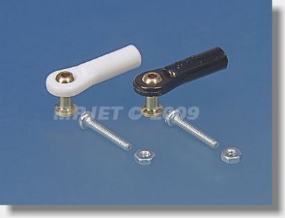 Śruby kulowe typu V1 (plastikowe oczko z gwintem M2,5, mosiężny trzpień z długą szyjką, o średnicy zewnętrznej 5 mm i otworem na śrubę M2). Do precyzyjnego połączenia i całkowicie swobodnego ruchu pręta we wszystkich płaszczyznach. Zestaw zawiera śruby M2 z łbem walcowym i nakrętki M2. Dostępne w kolorze czarnym i białym.