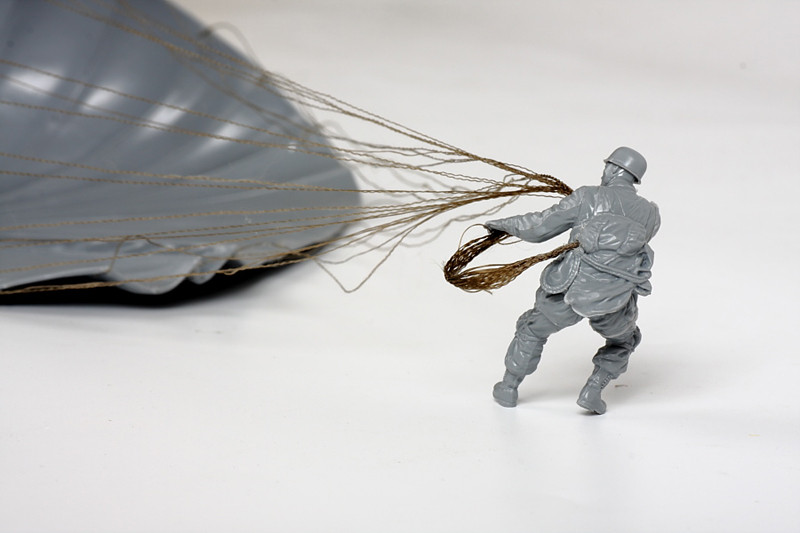 Zestaw plastikowych figurek niemieckich spadochroniarzy w skali 1:35. Zestaw zawiera plastikowe foremki do zbudowania 5 figurek wraz z bronią i wyposażeniem.