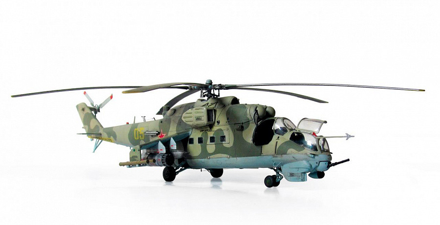 Mil Mi-24 to duży dwusilnikowy śmigłowiec szturmowy i wielozadaniowy przeznaczony do bezpośredniego wsparcia wojsk lądowych, niszczenia czołgów i celów opancerzonych, a także transportu 8 osób lub 1500 kg materiału w ładowni. Sojusz Północnoatlantycki nadał mu kryptonim „Hind” (po czesku „Łania”). Eksportowe wersje śmigłowca znane są jako Mi-25 i Mi-35. Podstawowym uzbrojeniem śmigłowca jest obrotowy, montowany na dziobie czterolufowy karabin maszynowy 9A624 kalibru 12,7 mm lub dwulufowe działko GŠ-23 kalibru 23 mm. Dodatkowe uzbrojenie i wyposażenie można podwiesić na czterech pylonach pod skrzydłami pomocniczymi. Na końcach skrzydeł znajdują się szyny do przenoszenia przeciwpancernych pocisków kierowanych. Wersja D ma dodatkowe zbiorniki w przestrzeni ładunkowej. Wytrzymałość śmigłowca wzrasta wówczas do prawie 4 godzin lotu i zasięgu ponad 800 km. Śmigłowiec brał udział w wielu konfliktach na całym świecie; być może najbardziej znaczącą była wojna Związku Radzieckiego w Afganistanie.