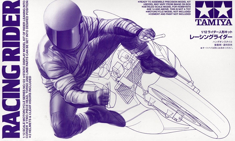 Plastikowy zestaw konstrukcyjny przedstawiający kierowcę wyścigowego pokonującego zakręt i schodzącego z motocykla. To doskonały dodatek, który można łączyć z modelami motocykli wyścigowych w skali 1:12. Podczas montażu możliwe jest częściowe dostosowanie układu kierowniczego do proporcji konkretnego motocykla. Na rysunku realistycznie oddano nie tylko fałdy kombinezonu, ale także mimikę twarzy i zmarszczki. Figura podzielona jest na trzy części – głowę, tułów i kończyny. Istnieją dwa rodzaje hełmów i dwa rodzaje wizjerów hełmów wykonanych z przezroczystego tworzywa sztucznego o grubości 0,2 mm.