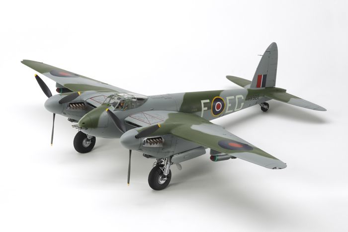 Tamiya przedstawia słynny „Drewniany cud” w imponującej skali 1:32! De Havilland Mosquito był brytyjskim wielozadaniowym samolotem myśliwskim, który od początku swojego istnienia w 1941 r. stanowił twardy orzech do zgryzienia dla myśliwców Luftwaffe, którym najczęściej udawało się unikać przeszkód dzięki dużej prędkości. Wykorzystywano go jako lekki bombowiec, myśliwiec nocny i samolot rozpoznawczy. Był to pomysłowo zaprojektowany samolot, wykonany niemal w całości z drewna. W roku 1930, kiedy rozpoczęto prace projektowe nad samolotem Mosquito, metal był bardzo popularnym i szeroko stosowanym materiałem budowlanym. Projektanci założyli jednak, że metale mogą okazać się towarem deficytowym w trakcie wojny, a ponadto nadal prawdą było, że konstrukcja drewniana będzie lżejsza od metalowej.