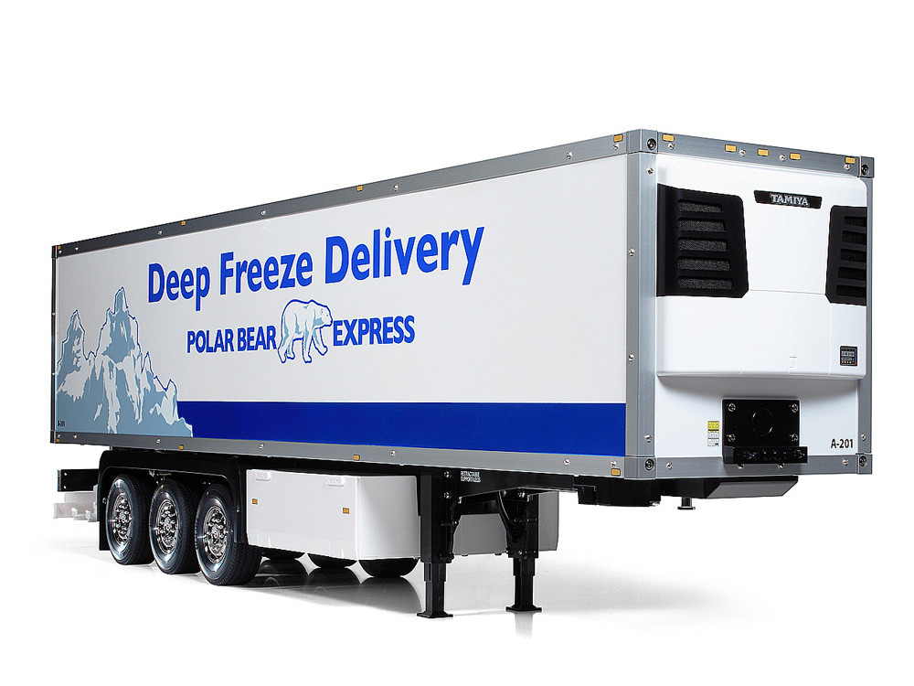 Zestaw trzyosiowej chłodniczej naczepy, który jest doskonałym uzupełnieniem modeli ciągników RC Tamiya. Ta naczepa, zaprojektowana do transportu towarów łatwo psujących się, doda Twojemu modelowi zupełnie nowy wymiar.