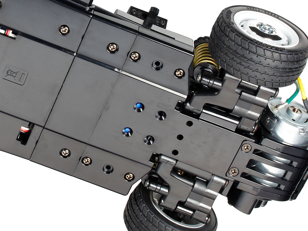 - w zestawie znajduje się jednostka napędowa w postaci silnika prądu stałego serii 540 i regulatora prędkości Tamiya TBLE-02;