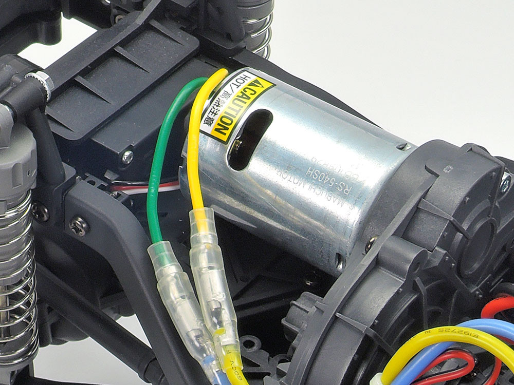 • W skład zestawu wchodzi jednostka napędowa w postaci silnika prądu stałego serii 540, regulator prędkości Tamiya TBLE-02S i zestaw oświetlenia LED.