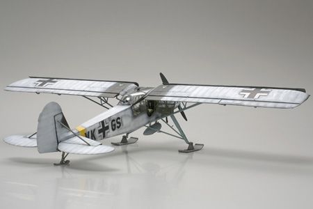 Zestaw zawiera części do repliki różnych wersji Fi 156C, w tym zbiornik paliwa, narty i 3 warianty kalkomanii