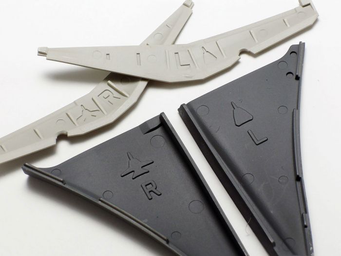 - Widoczne są dwa zestawy części pokazujące uszczelnienie krawędzi spływu u nasady skrzydła;