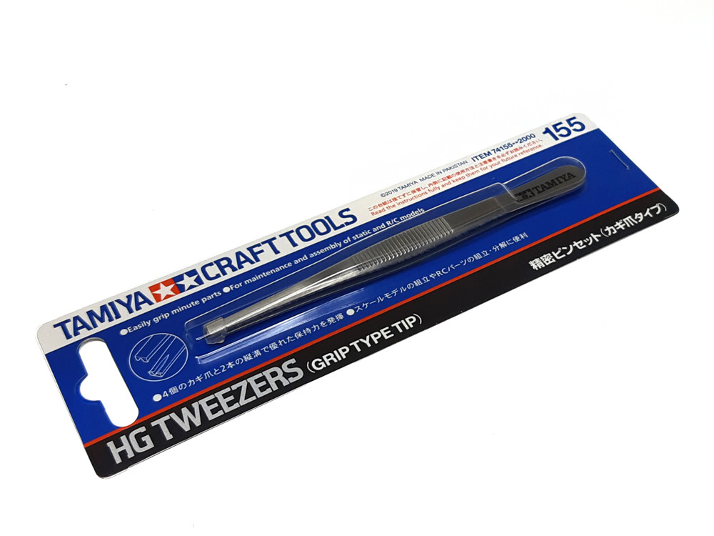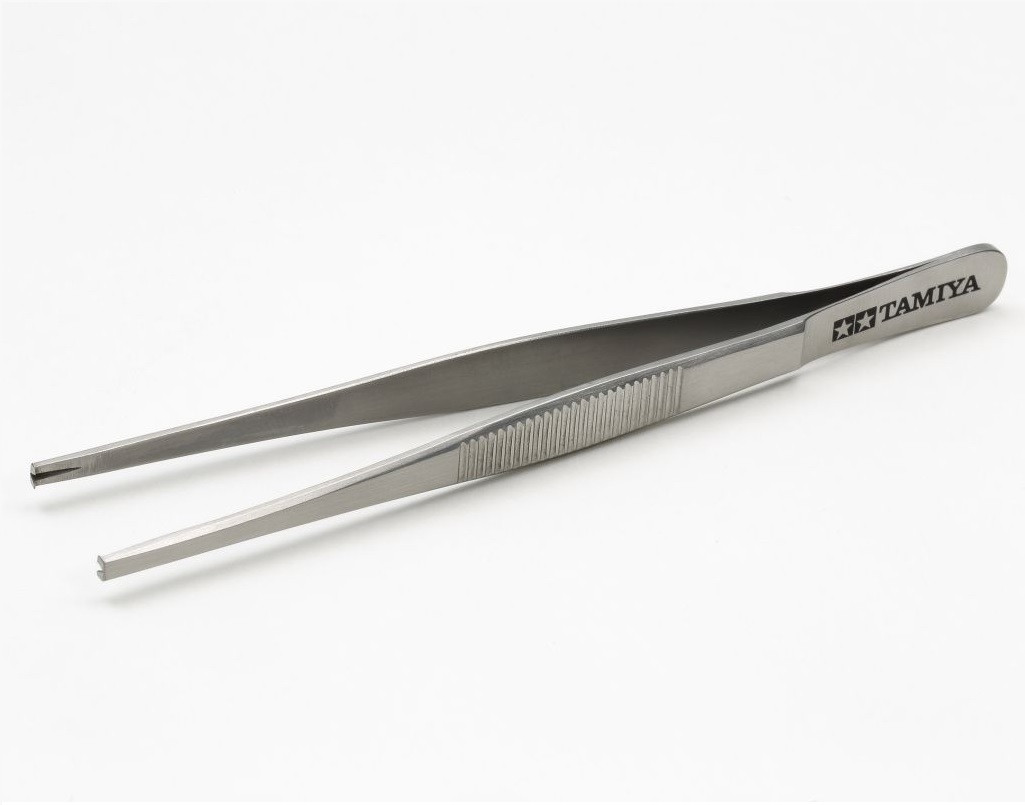 Specjalne pęsety Tamiya wyposażone w specjalne szczęki z podłużnym wgłębieniem. Jest to narzędzie, które umożliwia bezpieczne i pewne chwytanie małych, wydłużonych części lub kulek. Pęsety są szczególnie odpowiednie do konserwacji mechanizmów różnicowych i skrzyń biegów modeli samochodów RC, ale mogą być również używane w dziedzinie modelarstwa plastikowego. Długość narzędzia wynosi 130 mm.