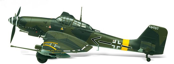 Junkers Ju 87 Stuka służył jako bombowiec nurkujący dla nazistowskiej Luftwaffe podczas II wojny światowej. Model Ju 87 B-1 sprawdził się szczególnie dobrze na początku wojny w Polsce, Holandii, Belgii i Francji. Jednakże w bitwie o Anglię okazał się wielkim rozczarowaniem. W 1941 roku wprowadzono model Ju 87 D-1, w którym wprowadzono szereg udoskonaleń, głównie w zakresie aerodynamiki i opancerzenia. Ze względu na siłę wrogich myśliwców, Stukasy stopniowo zaczęto wykorzystywać jako samoloty bojowe. Istniała również wersja Ju 87G przeznaczona do walki z czołgami, uzbrojona w dwa działa BK 37 kal. 37 mm. W grudniu 1939 roku rozpoczęto produkcję wersji B-2. Różnił się większą chłodnicą wodną i drewnianym śmigłem, które zastąpiło metalowe śmigło, a także udoskonaloną stacją radiową. Wersja B-2 mogła przenosić do 1000 kg bomb.
