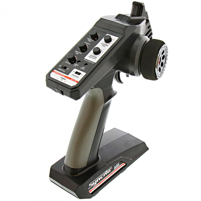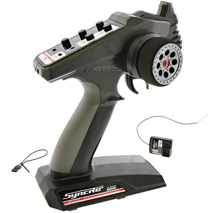 Nadajnik dwukanałowy Kyosho Syncro KT-231P montowany na kierownicy, w tym trzykanałowy odbiornik Kyosho KR-331. System wykorzystuje pasmo częstotliwości 2,4 GHz, co ogranicza ryzyko zakłóceń do minimum. Idealny jako alternatywny zestaw RC do Twojej łodzi lub samochodu.