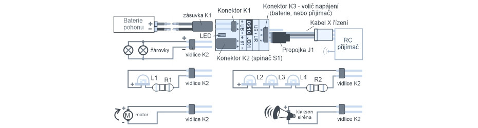 Przełącznik DS1C RC przeznaczony jest do przełączania akcesoriów w modelach i modelach redukcyjnych samochodów, TIR-ów, czołgów, statków, łodzi motorowych, łodzi podwodnych, samolotów, szybowców i maszyn mechanicznych.
