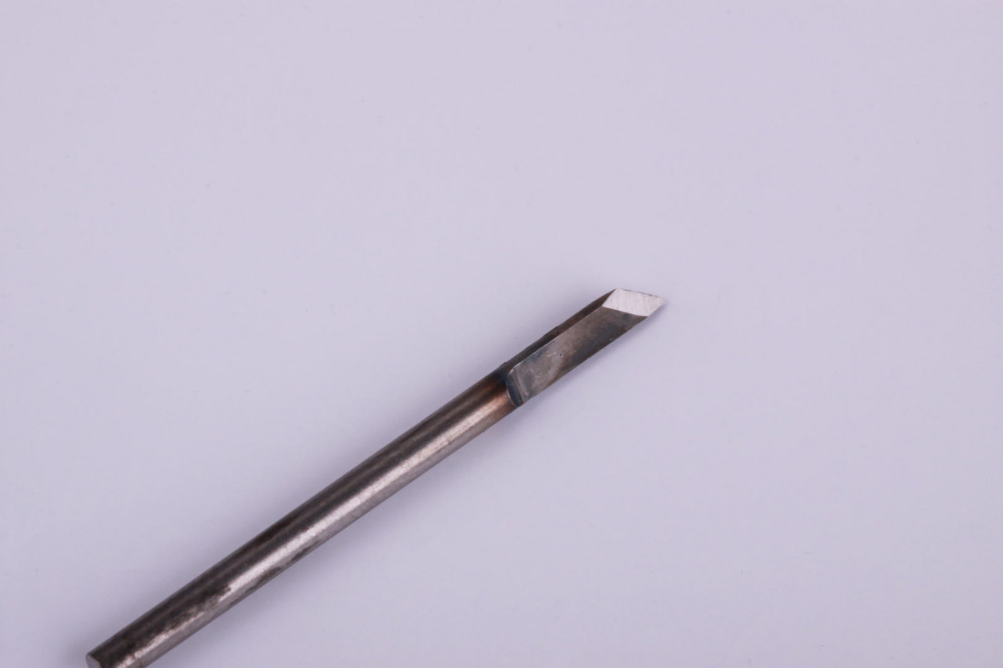 Płaskie, ścięte dłuto. Utwardzona część robocza narzędzia zapewnia maksymalną trwałość i długą żywotność. Zaprojektowane do rękojeści z zestawu GT75 Mr. Precision Carving Knife.
