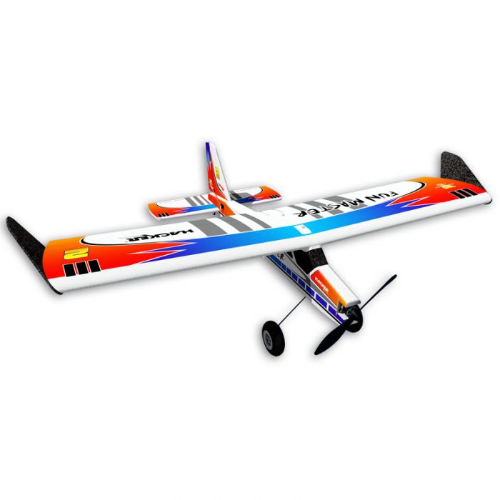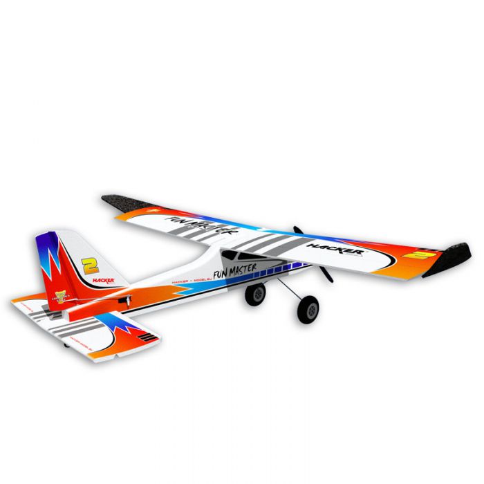 Trwały, stabilny i łatwy w obsłudze model sportowy. Duża powierzchnia skrzydeł, podniesiony kadłub z kabiną i winglety na końcach skrzydeł zapewniają modelowi jeszcze większą stabilność, co docenią zwłaszcza początkujący piloci. Jednak doświadczeni piloci również świetnie się bawią latając tym modelem i mogą wykonywać nim wszelkiego rodzaju akrobacje. Model ten może być wykorzystywany do holowania szybowców podczas lotu samolotem (sprawdzone przy holowaniu szybowców serii SKG - Blaník, Luňák, Fox i Swift produkowanych przez firmę Hacker). Główne części modelu wykonano z ekspandowanego polipropylenu (EPP) i zadrukowano w atrakcyjnych wariantach kolorystycznych. Duże koła podwozia gwarantują łatwy start i lądowanie nawet w nierównym terenie. Model posiada zdejmowane podwozie i system VOP ułatwiający transport. W kadłubie znajduje się komora umożliwiająca szybką wymianę akumulatora napędowego. Fun Master jest gotowy, pozostało Ci tylko zamontować jednostkę napędową i serwomechanizmy.