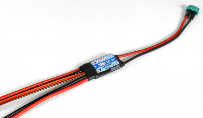 DSM 10 to elektroniczny przełącznik dwóch baterii odbiorników podłączonych do jednego odbiornika. Produkt zawiera również wyłącznik zasilania odbiornika. Akumulatory podłączone do wejść DSM10 są stale mierzone i za pomocą komparatora histerezy oba akumulatory lub akumulator o wyższym napięciu są podłączane bezpośrednio do wyjścia.