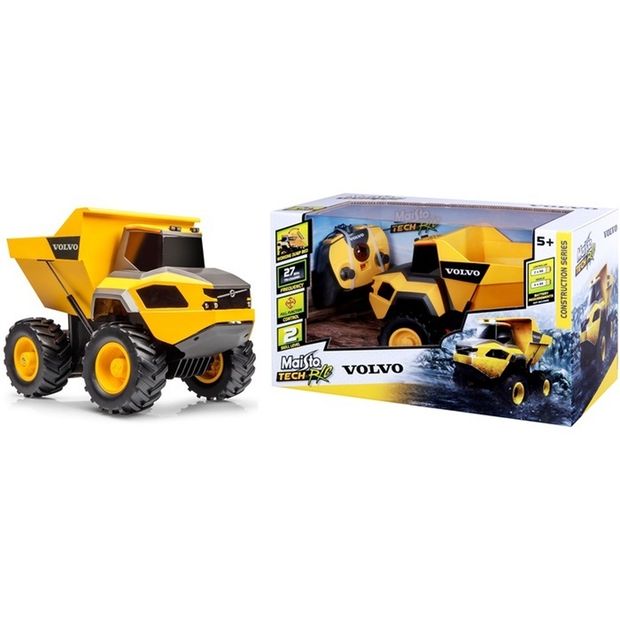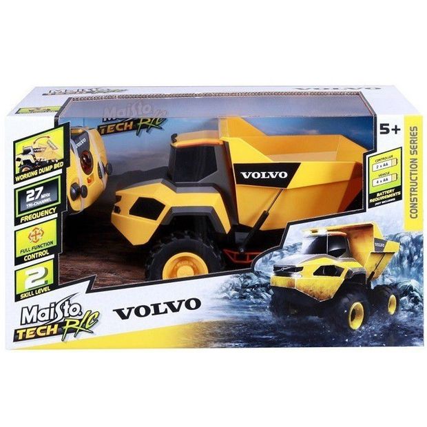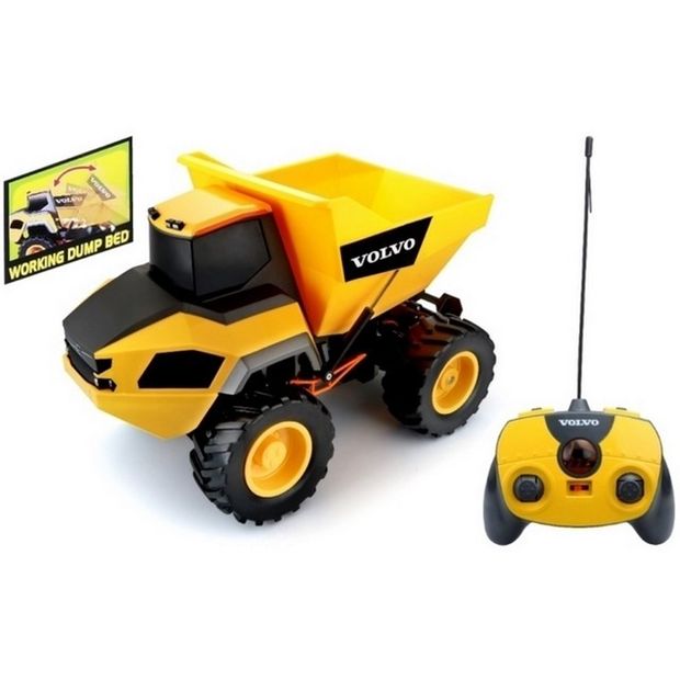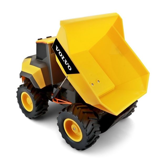 Zdalnie sterowana wywrotka górnicza Volvo jeździ do przodu/do tyłu, skręca w prawo/w lewo i ma działającą wywrotkę. Dzięki dużym oponom z bieżnikiem terenowym i funkcjonalnemu zawieszeniu, pojazd z łatwością poradzi sobie nawet w trudnym terenie. Model wyposażony jest w trzykanałowy nadajnik 27MHz.