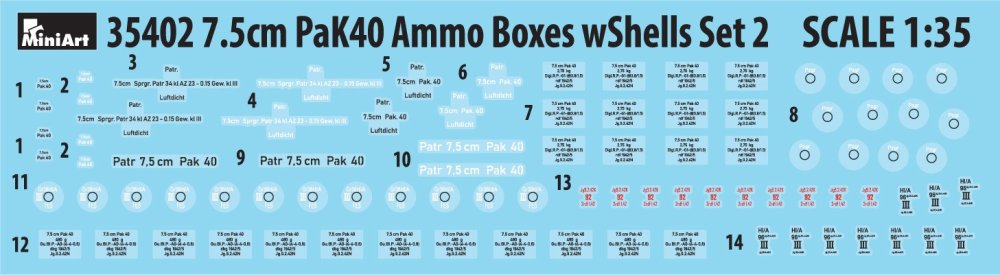 MiniArt 35402 - 1:35 7,5 cm PaK 40 Skrzynki na amunicję z nabojami Zestaw 2