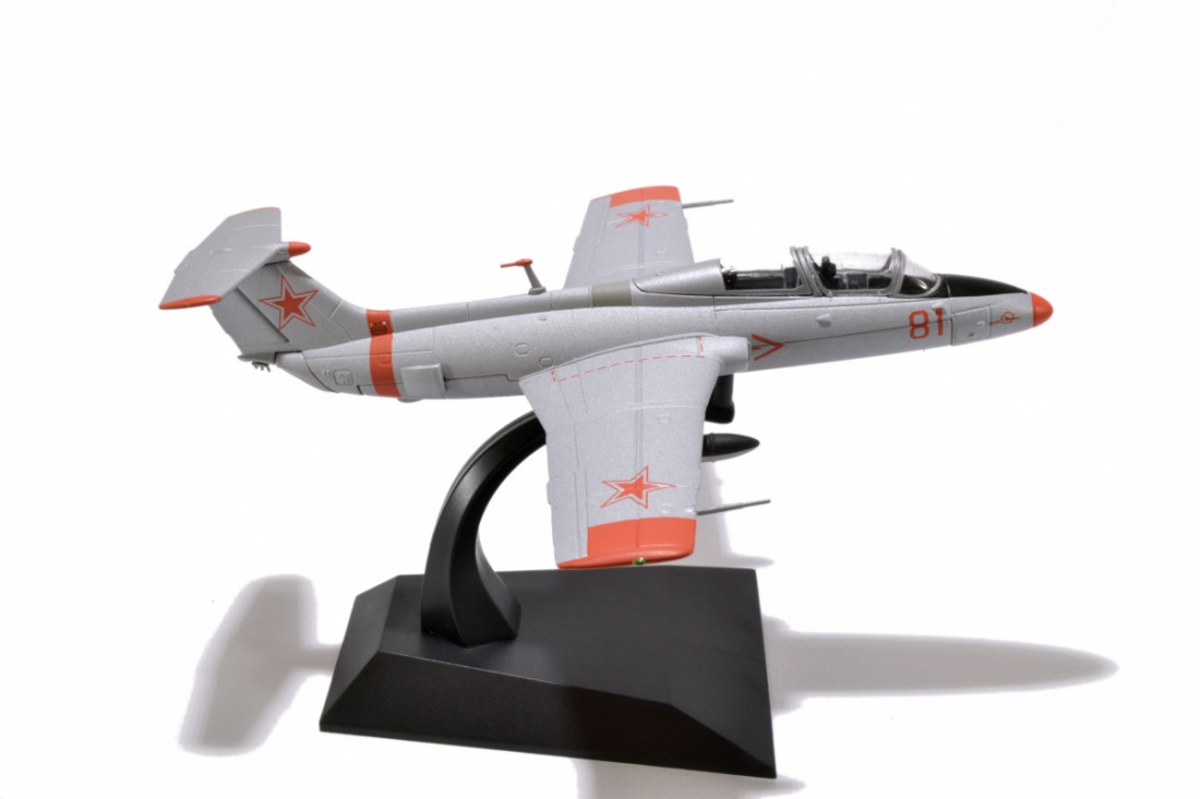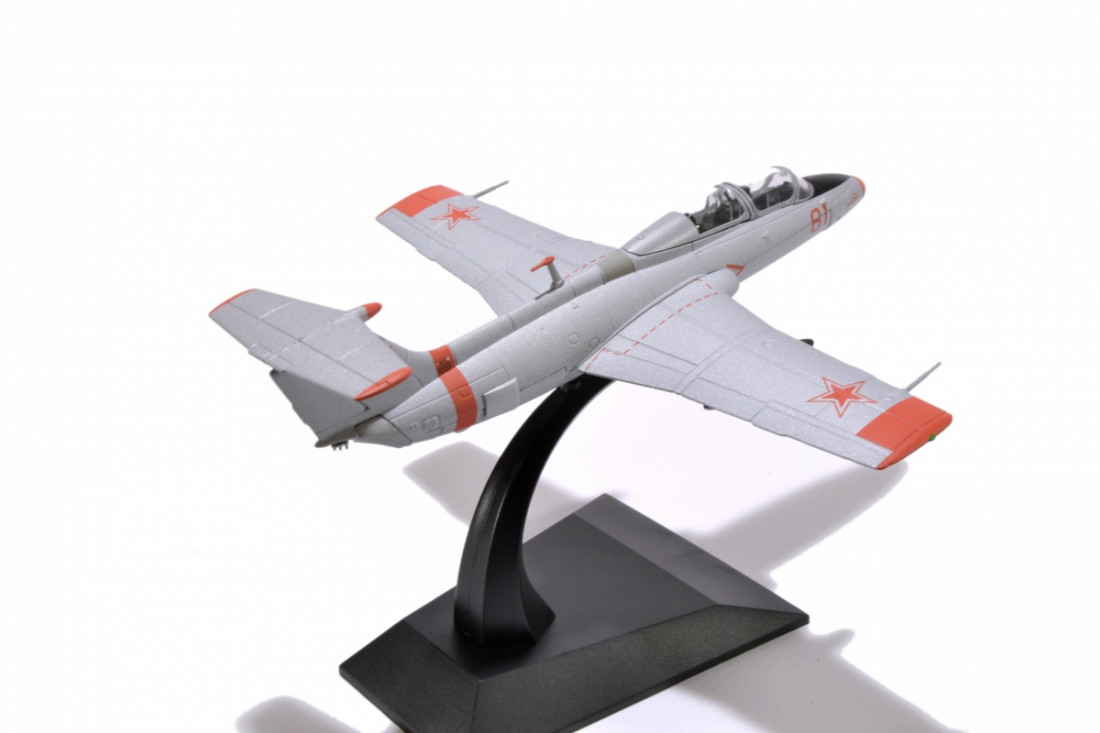 Metalowy model kolekcjonerski legendarnego czechosłowackiego samolotu treningowego Aero L-29 Delfín, wykonany w skali 1:72 w wysokiej jakości. W zestawie znajduje się stojak do eksponowania modelu.