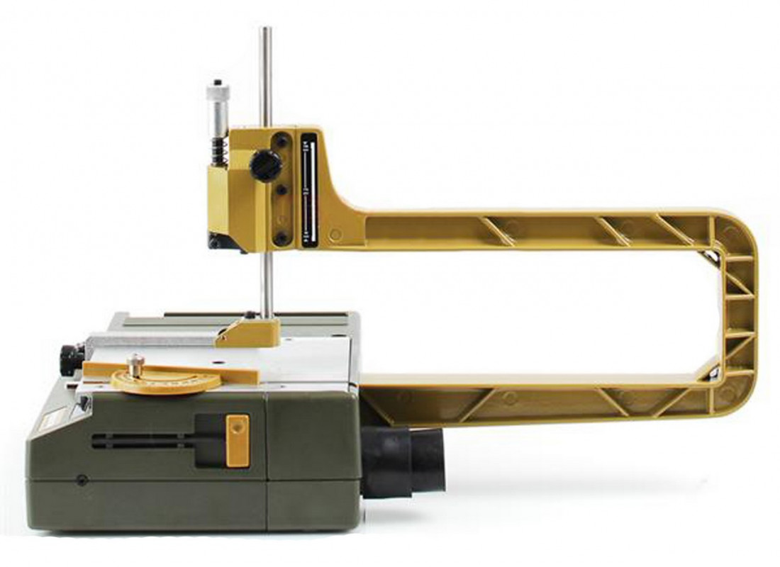 Piła nadaje się do prac precyzyjnych, modelarstwa, produkcji zabawek i precyzyjnej mechaniki. Z elektroniczną kontrolą prędkości. Tnie drewno miękkie do 40 mm, drewno twarde do 10 mm, tworzywa sztuczne (również płytki drukowane) do ok. 4 mm i metale nieżelazne do 2 mm. Blat roboczy frezowany płasko, wykonany z odlewu aluminiowego (160 x 160 mm). Bardzo stabilne ramię piły wykonane z żebrowanego poprzecznie odlewu aluminiowego (wysięg 300 mm).