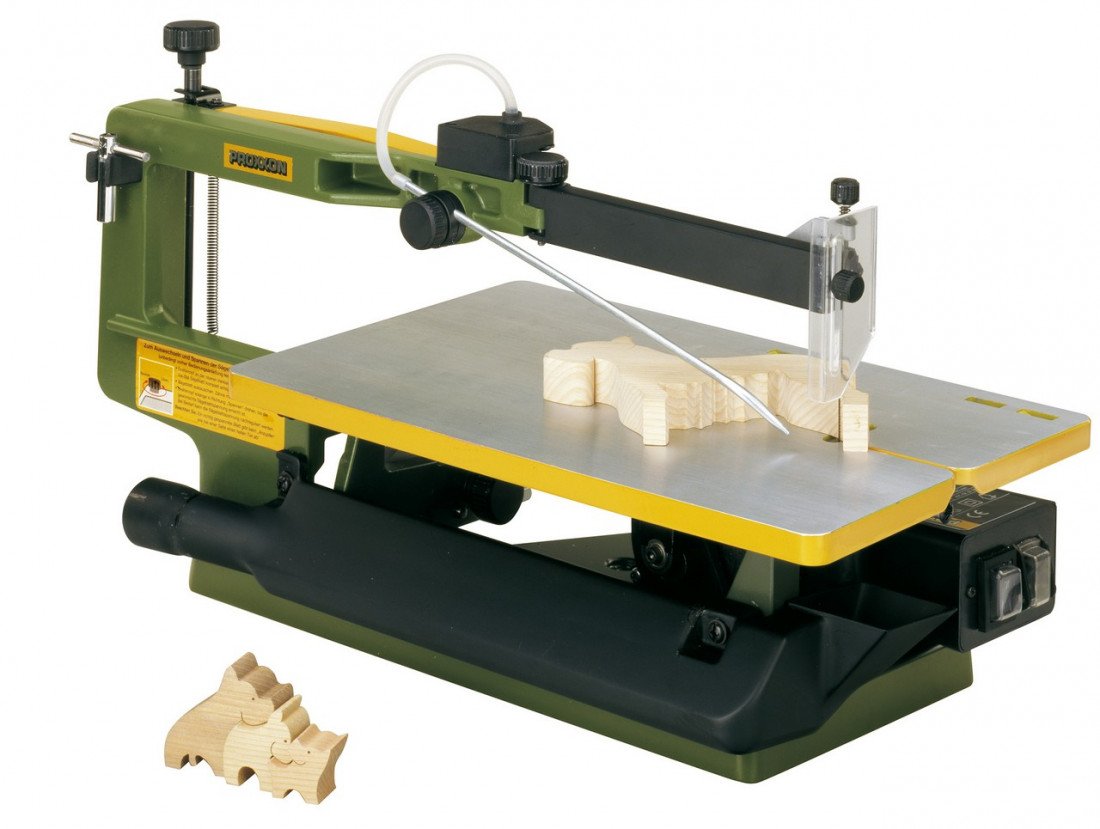 Tradycyjne brzeszczoty pił mocowane są za pomocą opatentowanych ogniw, które umożliwiają odpowiednie naprężenie brzeszczotów bez sworzniowych. Brzeszczoty z trzpieniami mocuje się bez prowadnicy. Ręczna śruba napinająca umieszczona z tyłu piły służy do precyzyjnego napinania brzeszczotów! Pochylenie stołu od -5° do 50°. Zakres cięcia: drewno 60 mm, metale nieżelazne (w zależności od rodzaju) 10 – 15 mm. Bezproblemowe cięcie pleksi, płyt wiórowych, materiałów piankowych, skóry i korka.