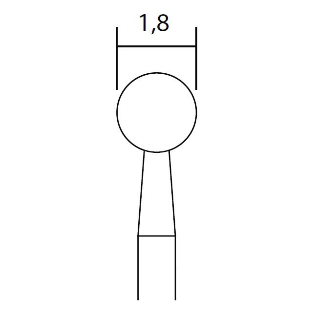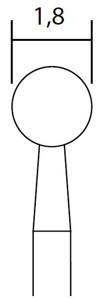 Do obróbki (szlifowania, grawerowania, dłutowania) materiałów bardzo twardych, szkła, porcelany, ceramiki, stali (w tym chromowo-kobaltowej) i tworzyw sztucznych. Średnica główki: 1,8 mm, średnica trzonka: 2,35 mm, długość trzonka: 44 mm. Prędkość dopuszczalna: 180 000 obr./min., prędkość robocza: 18 000-20 000 obr./min.