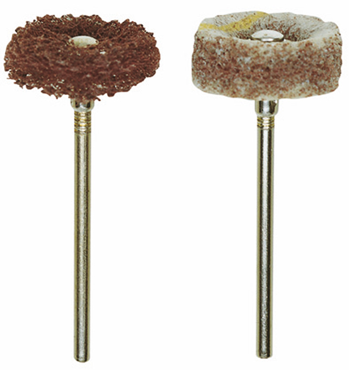 Szczotki ścierne wykonane z włókniny nylonowej. Do czyszczenia, matowienia i szlifowania stali, stali nierdzewnej, metali nieżelaznych itp. Średnica trzpienia 2,35 mm.