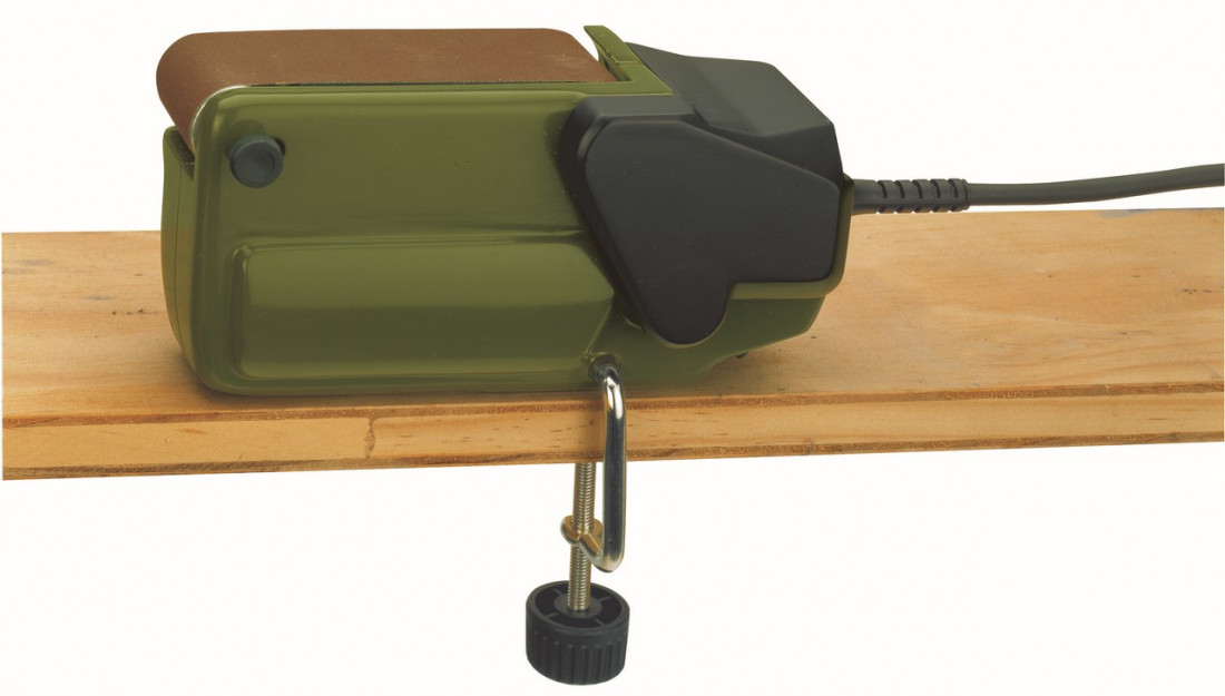 Taśma ścierna prowadzona jest po lewej stronie wzdłuż krawędzi szlifierki - lepsze możliwości szlifowania "w narożnikach". Delikatne ruchy rolki prowadzącej zapobiegają zbaczaniu paska na bok. Łatwa wymiana pasów szlifierskich dzięki naciągowi sprężynowemu. Obudowa młynka wykonana jest z poliamidu z dodatkiem włókna szklanego.