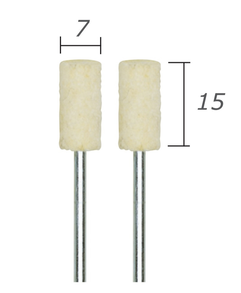 Filcowe podkładki polerskie przeznaczone do polerowania metali, złota, srebra, metali nieżelaznych, mosiądzu, aluminium przy użyciu pasty polerskiej. Nadaje się również do prac wykończeniowych przy produkcji narzędzi i form. Zalecana niska prędkość zapobiega przypalaniu się obrabianego przedmiotu i uszkodzeniu narzędzia. Utwardzoną pastę polerską można zmiękczyć olejem lub poprzez delikatne podgrzanie. Trzonek ø 2,35 mm.