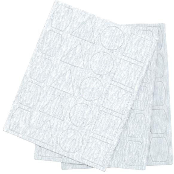 Samoprzylepny papier ścierny z węglika krzemu. Trzy arkusze, każdy zawierający 5x4 różnych kształtów. Kształty są identyczne jak w przypadku nakładek szlifierskich Proxxon PS 13. Granulacja: 180.