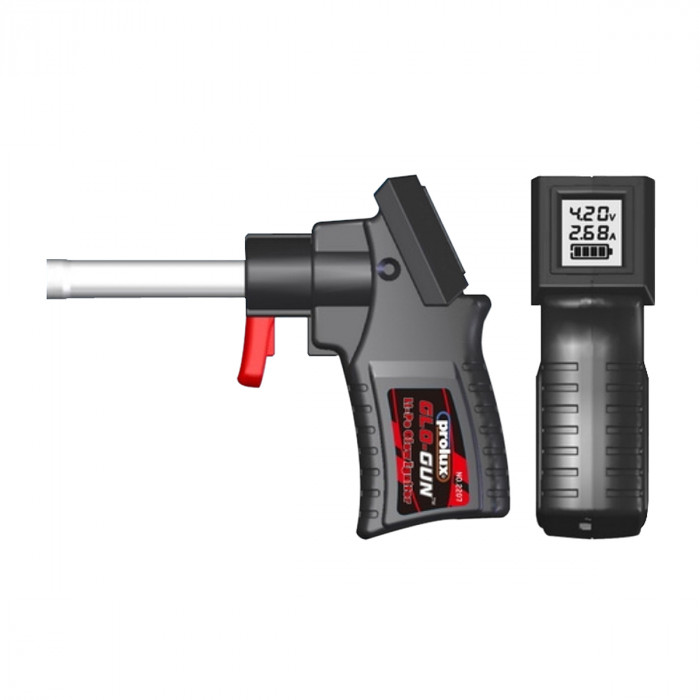 Pistolet termiczny ze zintegrowanym akumulatorem LiPo i wskaźnikiem LCD.