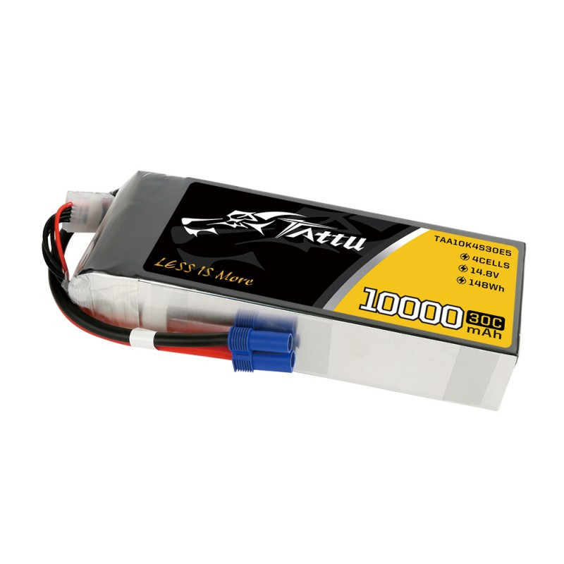 Akumulator litowo-polimerowy GENS ACE LiPo TATTU series - 4S 10000mAh 14,8V 4S1P (30C) EC5 Plug o maksymalnym prądzie rozładowania 60C przeznaczony jest przede wszystkim do użytku w profesjonalnych multicopterach UAV. Akumulator wyposażony jest w złącze zasilania EC5.